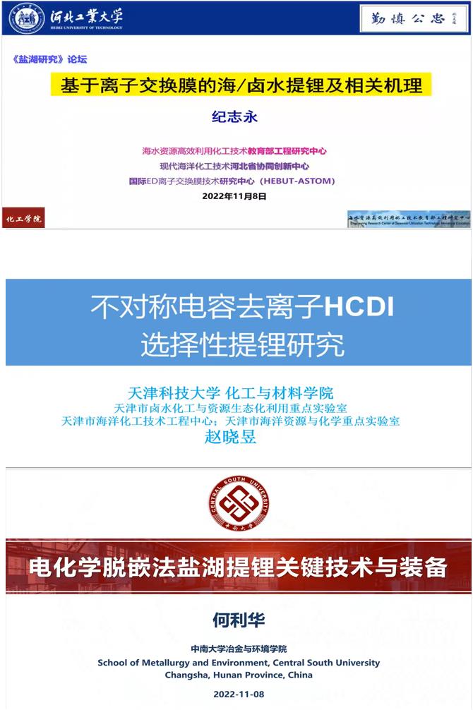 論壇圍繞“鹽湖鹵水提鋰”這一中心議題,進(jìn)行了學(xué)術(shù)報告及廣泛交流。論壇包括3個邀請報告,邀請河北工業(yè)大學(xué)紀(jì)志永教授、天津科技大學(xué)趙曉昱副研究員、中南大學(xué)何利華副教授分別圍繞離子交換膜提鋰、不對稱電容去離子技術(shù)選擇性提鋰、電化學(xué)脫嵌法提鋰等主題作了深度報告與交流。